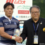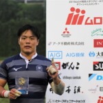MOMにはコンバージョン7、ペナルティー1のすべてのゴールを成功させた同志社・原田健司選手が選ばれた。