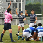 38分、相手ペナルティーを得た同志社はショットを選択。これが決まって駄目押しとなった。しかしあきらめない摂南はロスタイムに入った44分にトライを返すがときすでに遅く、ノーサイド。大熱戦は終わった。