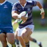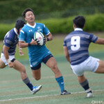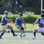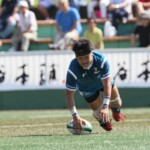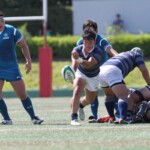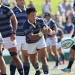 後半に入り勢いが増した同志社大は、開始1分には、SH9番人羅がトライ、6分には、WTB11番山本キャプテンがトライ、GKもWTB14番原田が2本とも成功し、28−14とリードを広げる。
