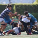 攻撃を続けて、ゴールを目指し、ゴール前までフェーズを重ね、最後はFL7番堀部がゴールポスト左にトライ、GKもWTB14番原田が成功し、49−42と同志社大がリードしてノーサイド。
