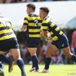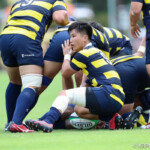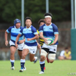 4分、後半の先制は立命大、WTB⑭藤井健太郎が個人技で大きくゲイン。最後は、⑨平尾がゴール前ラックサイドを突破し、トライ(⑫藤高G成功)でスコアをまたイーブンに戻す(14-14)。