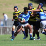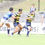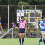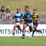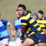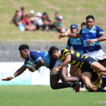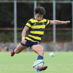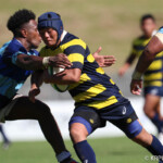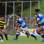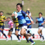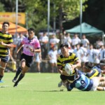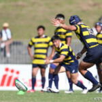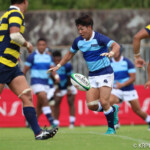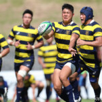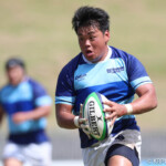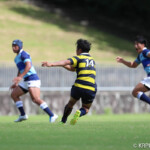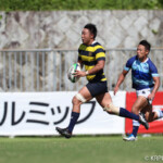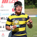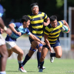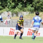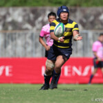 その後すぐの22分、今度は摂南大、ゴール前10MのラックからSH⑨守山虎二朗からSO⑩山田史樹、そしてFL⑥譲原匠海からオフロードで⑧イエレミアに渡りゴールポスト下にトライし、逆転する(⑮ツイドラキG成功7-14)。