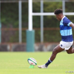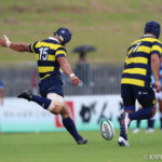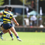 40分にも、SO㉓安井拓馬からCTB⑬木田晴斗にパスを繋ぎダメ押しのトライ、終わってみればダブルスコア以上の点差、立命大の勝利でゲームセットとなった(43-19)。
