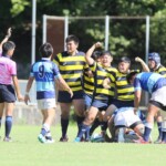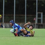 立命大はキックオフ後しばらく、摂南大陣営に攻め込みフェーズを重ねるが、トライを取り切れず摂南大に押し返される。