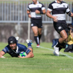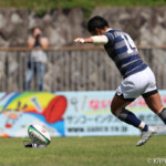 反撃に出たい大体大は17分に22mラックからターンオーバーしたボールを途中出場したSH21番窪田がトライ、GKもWTB11番田中が成功し、12−43とする。