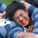 意地を見せたい大体大は38分に左7mラインアウトからモールを形成し、最後はHO2番河野が左中間に飛び込みトライ、GK不成功17−55とする。