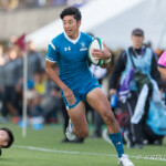 5分にはHO②北條耕太、9分には⑨藤原と続き(ゴールもすべて決め)、勝利をほぼ決定づける。(56-13)