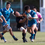 その後、近大もスクラムやブレークダウンで健闘するも、天理大の堅い守りに跳ね返される。