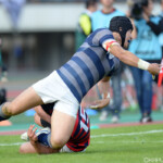 後半、最初にスコアしたのは同大だった。6分に京産大のお株を奪うモールを押し込みトライ。ゴールは惜しくも決まらず、逆転には届かない。(12-13)