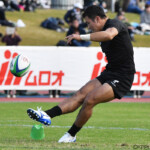 動いたのは12分、同大陣ゴール前の左中間ラックから素早く左へ展開、15番立見聡明が13番シオサイア・フィフィタをダミーに飛ばしパス、11番江本洸志が左隅にトライ、10番松永拓朗のゴールも決まり7点先取。