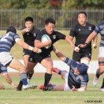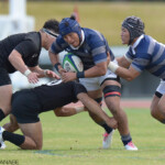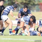 前半は同志社さんの激しいディフェンスに受けに回ってしまいましたが、このディフェンスに対してどうやってトライを取るか?チーム内でコミュニケーションを取って、それを実行できたことは良かった点です。相手22m内に入ったらトライを取り切るという事が前半に出来なかった事は反省点でした。
