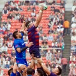 前半、近鉄の気迫が豊田自動織機を上回った。前に出る攻撃で何度も相手をゴール前に釘付けにし、6分、25分、35分の3トライを奪った。