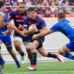ディフェンスでも前に出るダブル、トリプルのタックルでゲインを切らせない。一方、豊田自動織機、攻撃面ではタイミングが悪かったり相手に渡してしまうなどパスミスが目立ち、近鉄にゲインを許すディフェンスにも課題が残ったように感じられた。