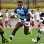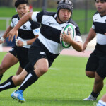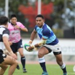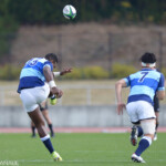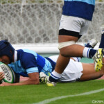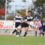 均衡を破ったのは、摂南大⑪岡田だった。34分にゴール前ラックからパスアウトされたボールを左隅に押さえ込み、本日2本目のトライ。ゴールをFB⑮ヴィリアミ・ツイドラキが決めて突き放す。(12-0)