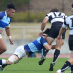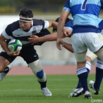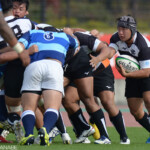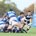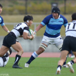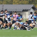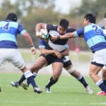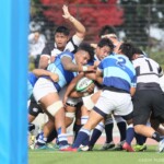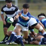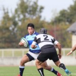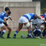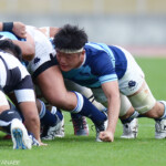 開始早々、摂南大はWTB⑪岡田寛人が持前のスピードで左タッチライン際を走り抜け、ゴール前に迫る。その後、ゴール前5Mでのスクラムを摂南大が押し込むが、大体大のコラプシングなどで再三スクラムが繰り返される。
