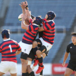 後半に入っても勢いが衰えない天理大は5分に中央ゴール前5mスクラムからNO8の位置にいたFL6番キャプテン岡山が右中間にトライ、GKもFB15番松永が成功し、7-24。