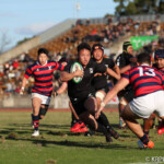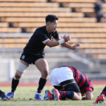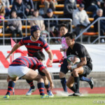 リズムを掴んだ天理大は20分に自陣からLO5番モアラが抜け出しサポートに付いていたWTB14番荒川が右中間にトライ、GKもFB15番松永が成功し7-31となる。