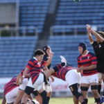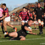 意地を見せたい京産大は32分に左ゴール前10mラインアウトからモールで攻め込み最後はHO2番宮崎が左隅にトライ。GK不成功12-31とする。