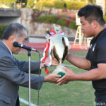 MOMにはデフェンスとアタックでも活躍した天理大学HO2番北條耕太が選ばれた。