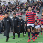 ロスタイムに入ってもCTB13番フィフィタが右中間にトライ、最後はWTB11番江本が右中間にトライ、2本のGKもFB15番松永が成功し、12-50としてノーサイド。