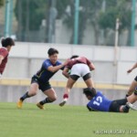 同点になってからは再び鹿児島大学が見せ場を作り、トライまであと一歩というところまで迫るも、大阪国際大学が粘り、前半を7−7で折り返す。