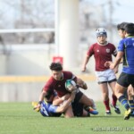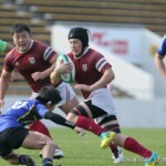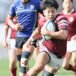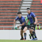 試合が動いたのは後半21分。ビックゲインからパスを回し、⑪嶋田が左にトライ、12−7と逆転する。