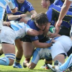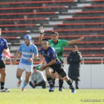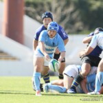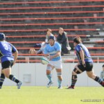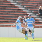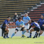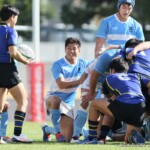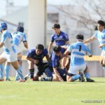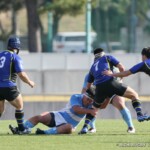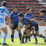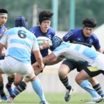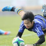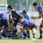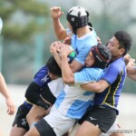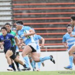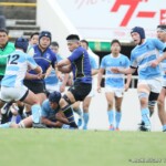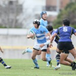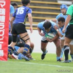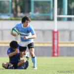 中盤、スクラムから攻撃を連続すると、FW・BK一体となった攻撃で徐々に地域を進める。対する東京学芸大学は前に出る防御で応戦、ターンオーバーの攻撃から左サイドを抜け出しゴール直前まで迫る。