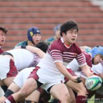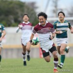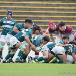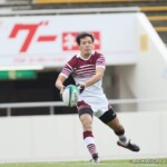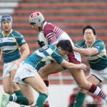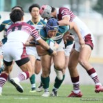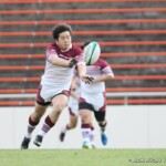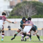 対する東北大学は前半12分、相手陣のスクラムからFWが前進し、⑦片岡が中央に押し込みトライ、7−21と対抗する。