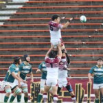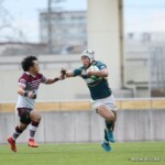 悪い流れを断ち切りたい名城大学は、後半26分、中盤からのラインアウトをターンオーバー、左右に展開し⑪瀬澤が中央を走りきりトライ、コンバージョンも成功し、54−19と突き放す。