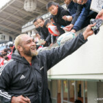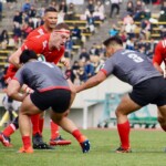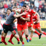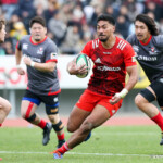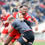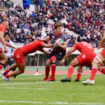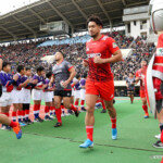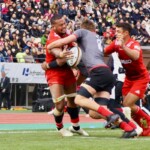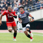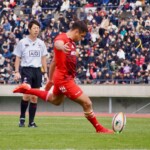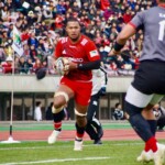 ホーンがなり、ラストワンプレーとなった後半41分も自陣からパスをつなぎ、5番ブロディ・レタリックがトライ。ゴール成功50-16で試合終了。