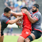 前半12分、左ラックから8番タウムア・ナエアタがボールを持ち出し、12番リチャード・バックマンが左へトライ。ゴール不成功8-0。
