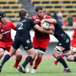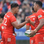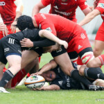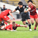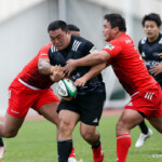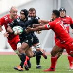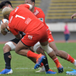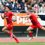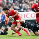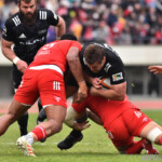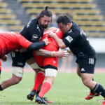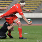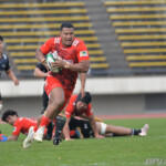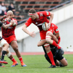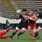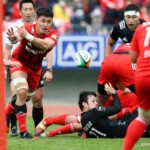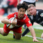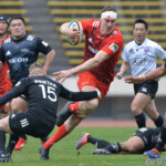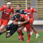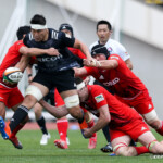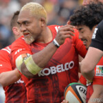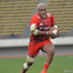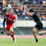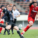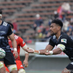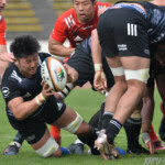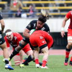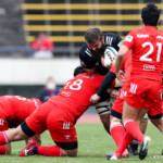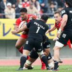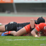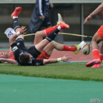 56分、リコー陣10mからフェーズを重ね少しずつ前進。ゴール前でCTBラファエレ・ティモシーがバランスを崩しながらもFLグラント・ハッティングへパス。ゴール不成功26-6。