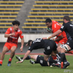 62分、リコー陣10mスクラムからFB山中が左サイドを快足で一気に駆け上がり、SH日和佐へパス。ゴール不成功31-6。