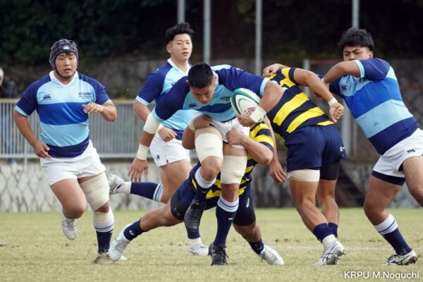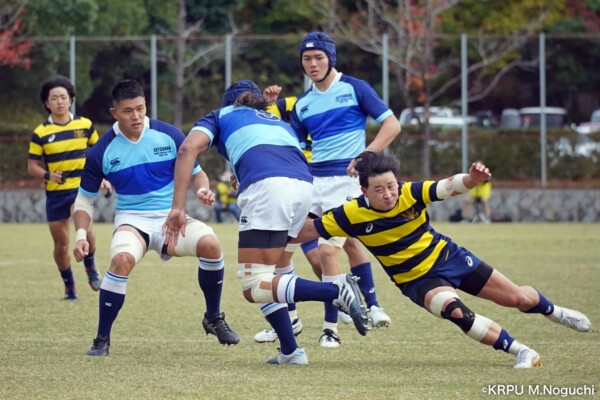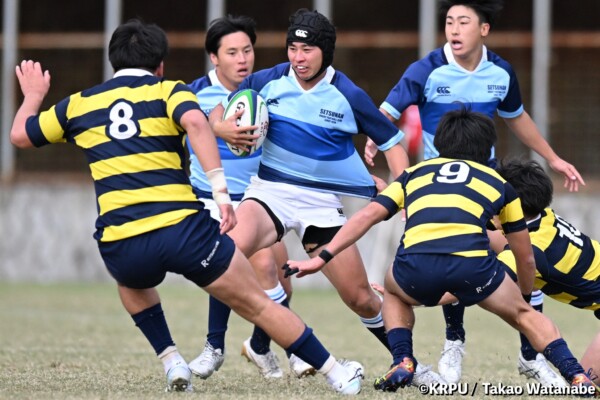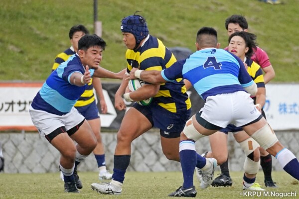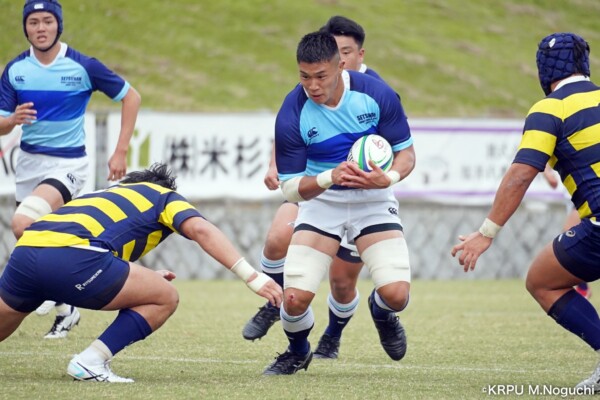 摂南大も、最後40分、LO④片松寛太のトライ(GKはSO㉒大津直人が決める)で締めるも追いつかず。(40-12)