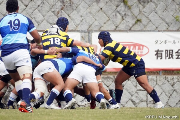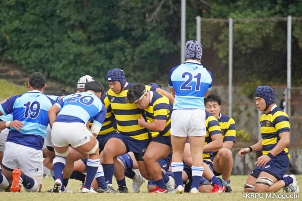 ここからしばらく、立命大がキック合戦でエリアポゼッションを有利に進めるも膠着状態が続く。