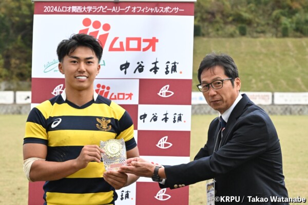 POMには、前半2本、切れのあるトライを決め、勝利に貢献した立命館大学FB⑮御池蓮二が選出された。