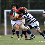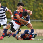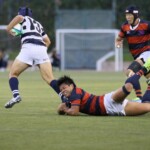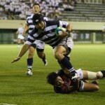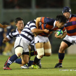 一方の関大も直後の14分、10mL付近左中間のラックから抜け出した右PR後藤拓哉が50m近くを駆け抜け左中間にトライ、5-14と反撃ののろしを上げる。関学大も20分にFW戦で関大ゴールに迫り、最後はゴール直前中央付近のラックから一転して左に展開、最後は左WTB黒石涼介が左隅に抑え、5-19と関大を突き放しにかかる。関大は27分にライン参加した左FL二上弘務が左中間にトライを返すが時すでに遅し。関学大が10-19と逃げ切って伝統の一戦を制した。