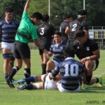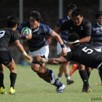 後半15分過ぎるころから同志社は疲れからかディフェンスでの粘りが無くなってきた。17分HL中央付近のラックから左WTB11番中野豪が50mを走り切り中央にトライ。(G成功47-0)