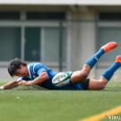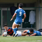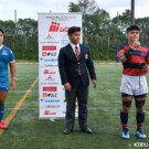 中盤にFWに勢いが出てきた近大は23分にゴール前5m右中間ラックから⑨松山将輝から⑭川井太貴が右隅トライ、⑩福山竜斗のコンバージョンも決まり14—7とした。しかしゲーム開始からディフェンスにミスがみられ、26分に関学⑮碓井のPGで17—7、29分に関学自陣のゴール前のこぼれ球を展開し⑨山内俊夫から最後は⑭中が右隅にトライを決め関学大が22—7で前半を折り返す。