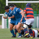 逆に関学は18分に22mラックからの⑭中のトライを皮切りに、23分にゴール前5mラインアウトから⑯田畑司が抜け出し左中間にトライ。30分にもハーフウェイラックから⑮碓井が左中間にトライ、ロスタイムに入った42分にも自陣10mライン付近で相手パスを⑭中がインターセプトから60mを独走してダメ押しのトライを奪った。⑮碓井のコンバージョンもすべて決まり55—19で関学の圧勝で終わった。