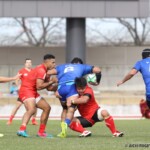 前半20分、レッドスパークスは、自陣10m外側のラインアウトから、ビッグゲインにより、相手ゴール前へ迫るもノックオンでトライが奪えない。