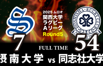 マッチレポート 2025ムロオ関西大学ラグビーAリーグ第5節の前半2試合はくもり時々晴れ、無風の宝が池公園球技場でいよいよ優勝を目指す上位4校が対戦。 第1試合、京都産業大学(以下、京産大)VS近畿大学(以…