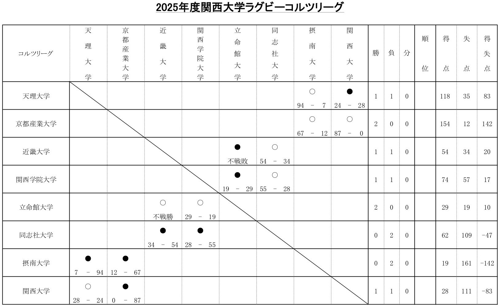 2025ムロオ関西大学ラグビーAリーグ