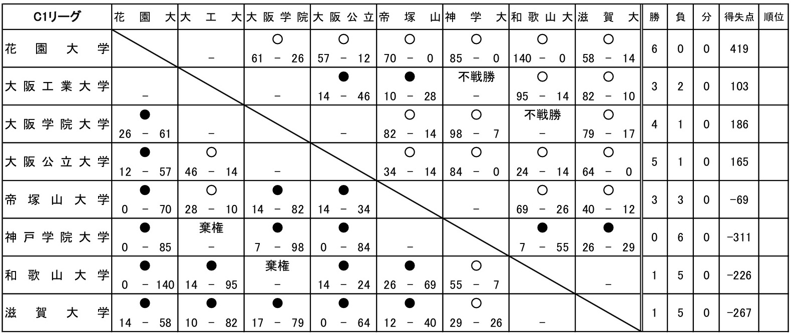| 大阪体育大学 大阪産業大学 京都大学 大阪教育大学 甲南大学 関西外国語大学 | 龍谷大学 大阪国際大学 神戸大学 追手門学院大学 大阪大学 大阪経済大学 |