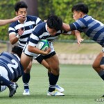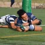 最後の突き放すトライを決めた⑭岡野喬吾は「きょうの試合は負けら終わりの試合なので堅くなったが、自分のプレーができてよかった。前半に自分のミスでトライされることが多かったので借りを返そうと思っていた」と振り返った。