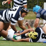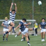 一方、関大は5回に渡って相手G前まで攻め込むが、ノックオン、ペナルティー、ターンオーバーでことごとく逆転のチャンスをつぶす。31分の10mライン付近のPGも外れる。