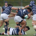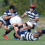 後半は同志社のBKSが能力を発揮、1分(⑬稲吉渓太)、5分(⑭岡野喬吾)にトライを奪い28-24と逆転に成功。ディフェンスも威力を発揮した。