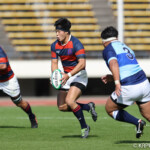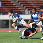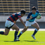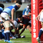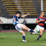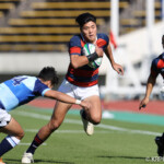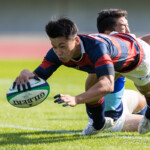 後半5分マイボールラインアウトから右へ展開。12番東がディフェンスラインを突破し、9番三田村が中央へトライ。ゴール成功26-17。
