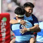 先制を許した後、前半18分、摂南大学が敵陣22mラインから9番三田村がディフェンスのギャップをつきゴール中央へトライ。13番ヴィリアミ・ツイドラキがゴールを決め、7-7と同点に追いつく。