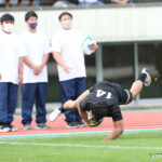 関学がミスを連発する中、74分、天理が右サイドに展開、タックルを受けても倒れないパワーに加え、スピード豊かに突進する天理を関学のDFは止められず、最後は天理14番(土橋)がトライ。キック成功で17-40。